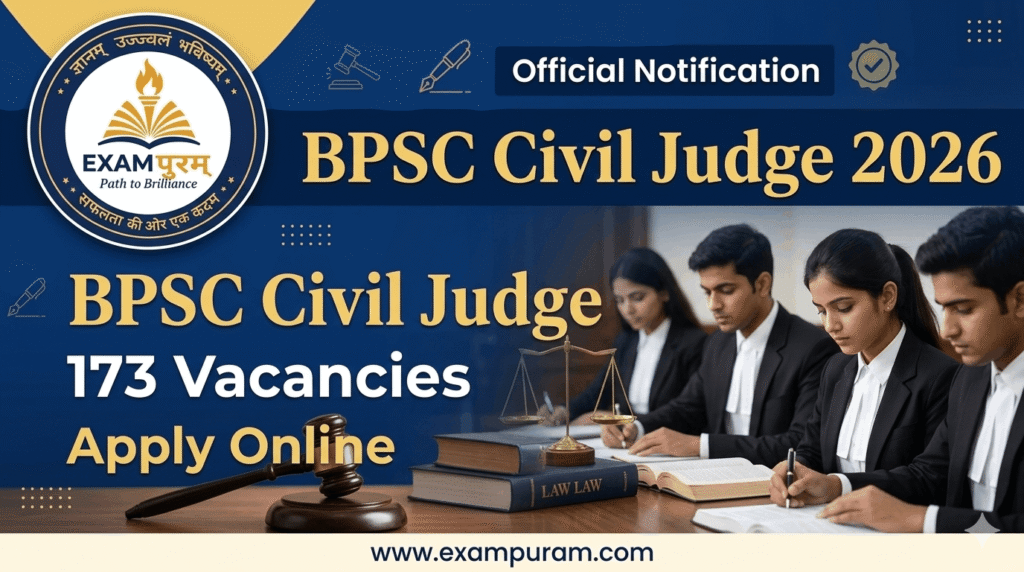 Bihar Public Service Commission (BPSC) has released the official notification for the 33rd Judicial Services Competitive Examination 2026 to recruit candidates for the Civil Judge (PCS-J) posts. Candidates who are interested in this opportunity can submit their online applications from 25 February 2026 to 18 March 2026. Before applying, applicants should carefully read the official notification for complete details regarding eligibility criteria, age limit, syllabus, category-wise vacancies, selection process, and pay scale under the BPSC Civil Judge Recruitment 2026.